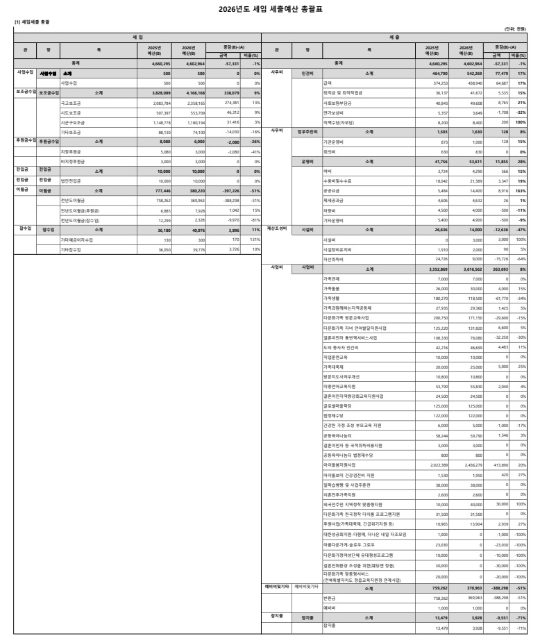 정읍시가족센터 홈페이지 공시(2026년 예산)